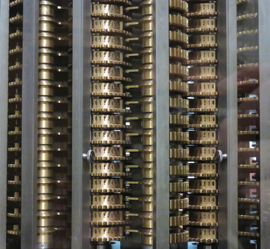 Figure 1.1 Babbage’s difference engine uses cogs and gears to perform physical manipulations on representations of numbers. It is used to multiply large numbers together. The components are representations of numbers and the physical manipulations make sense in the light of those contents—they multiply the numbers (using the method of differences).