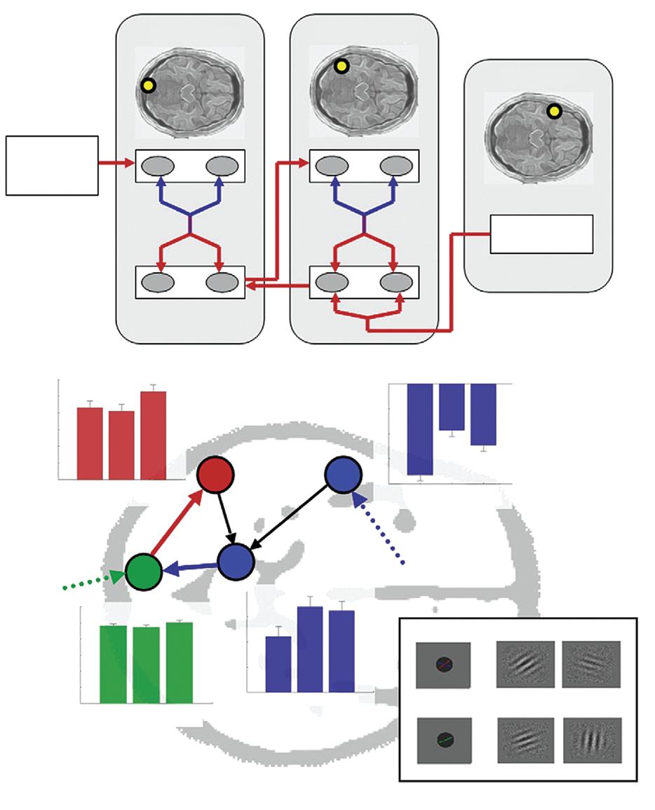 Figure 1.2 A figure that illustrates the explanatory scheme typical of cognitive neuroscience (from Rushworth et al. 2009). There is a computation (sketched in the lower half of panel (a)), implemented in some interacting brain areas, so as to perform a behavioural task (inset). The details are not important for present purposes.