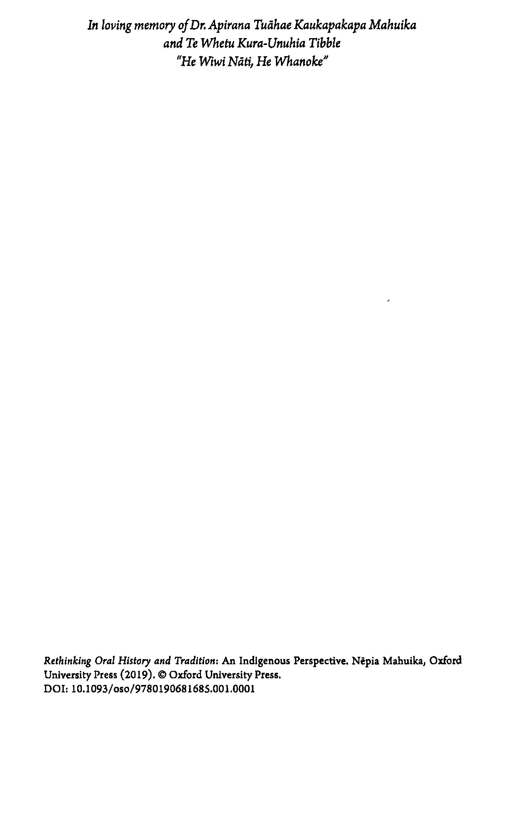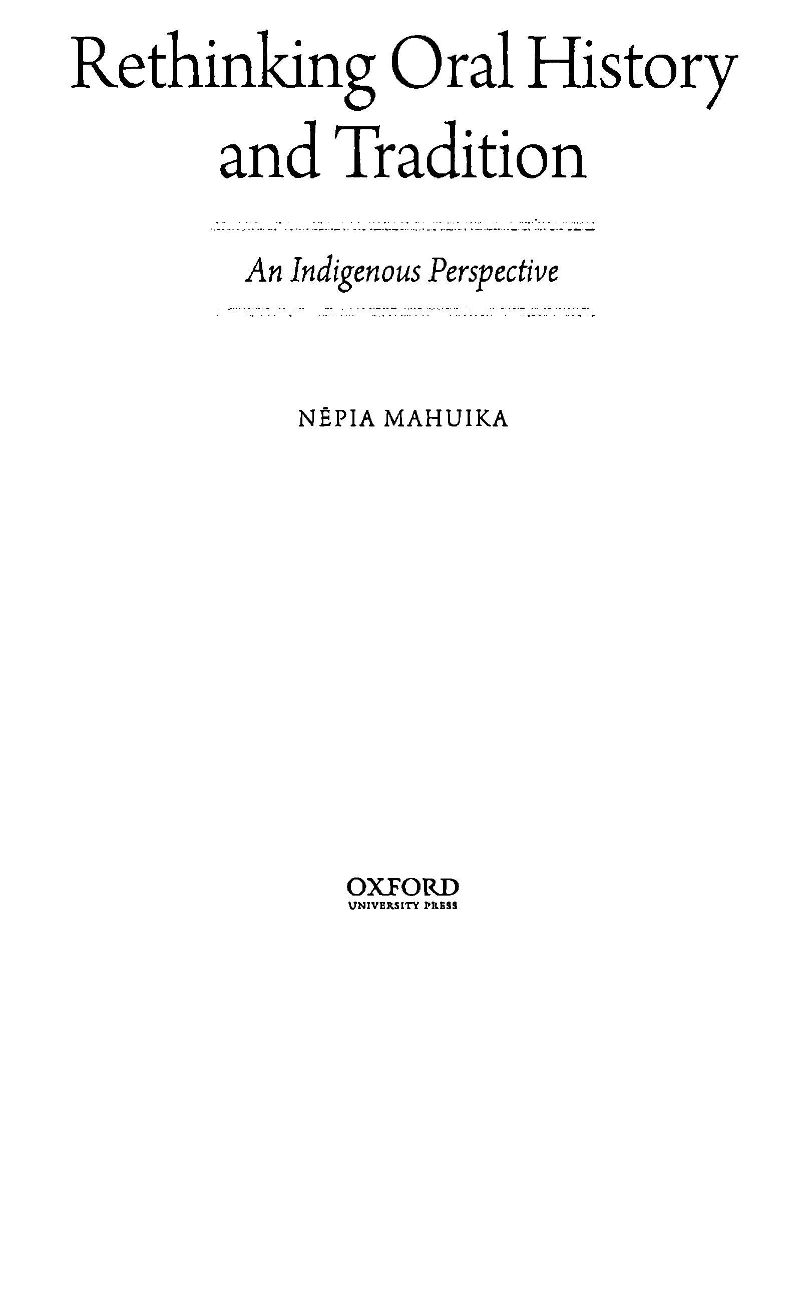 OralHistoryandTradition:An IndigenousPerspectiveNepiaMahuika