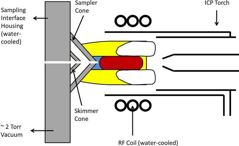 A diagram of the plasma sampling interface for ICP-MS. Adapted from Y. Makonnen, N. Sadiq, D. Beauchemin. Inductively coupled plasma mass spectrometry. in The Encyclopedia of Plasma Technology. Taylor & Francis Group (2017) pp. 623–654.