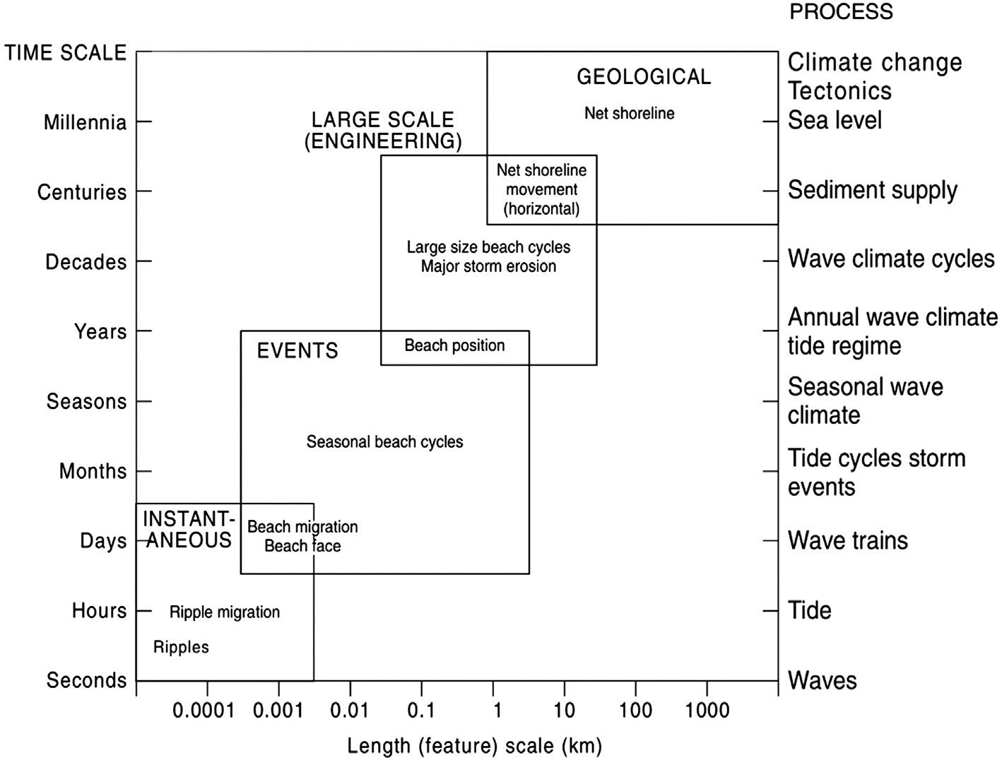 Advances being made in field technology to monitor both processes and the nature of (seabed) and changes in its morphology ultimately inform us how wave and current processes interact over these changing morphologies. The seabed and its subsurface are being mapped in increasing detail using sonar and swath mapping (e.g. Linklater et al., 2019), and the beach and dune surfaces and subsurface are being mapped with LiDAR and Ground Penetrating Radar (GPR) (e.g. Oliver et al., 2017). The processes driving change and sediment transport are being monitored with an increasing compact and a sophisticated range of sensors (e.g. Christensen et al. 2018; McCarroll et al., 2018) as outlined in Chapters 9, 10 and 27. The integration of these techniques enables the coast and its beach systems to be monitored and modelled at scales from instantaneous (Chapters 6, 7 and 8), to events (Chapter 22), to decadal (Chapters 19, 23 and 25) to millennium (e.g. Oliver et al., 2017).