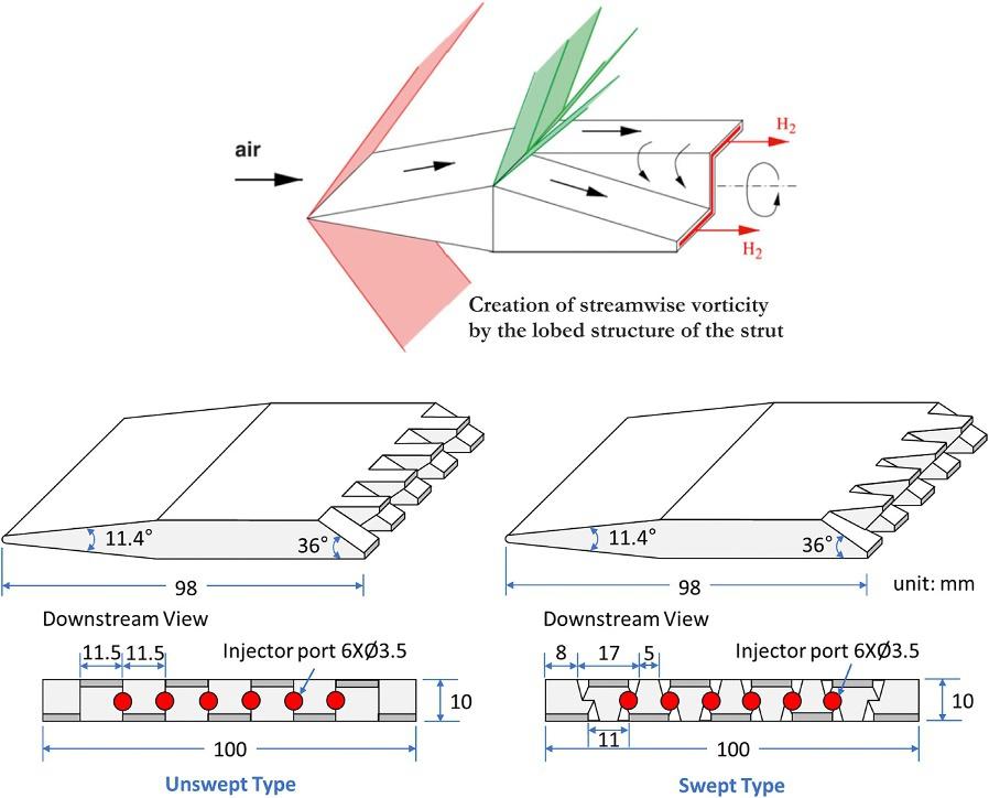sustainableflamepropagationtoensurecompletecombustion.Amixtureis saidtobecombustibleifitissurroundedbytherequisiteamountofoxygen andasourceofignition [14,15].Fuelinjectorssupplyfuelsconsistingof finelydividedparticlesthatseekoxygenwhenencounteringincomingpressurizedair.So,theroleofafuelinjectorishighlycriticalinthecontextofthe preparationofthecombustiblemixtureandstableflamepropagation.However,forthiswholeevent,adefinitedurationoftimeisrequired,whichis hardlyavailablewhenair,inthecaseofscramjetengines,entersintothe combustoratasupersonicspeedandremainsinthesamestateofmotion whilepassingthroughit.Thepreparationofthecombustiblemixtureduring anextremelyshortstayofairisamajorhurdleforthesuccessofscramjet technology.Thischallengehasbeenacceptedbyresearchers,andcontinuouseffortsarepouringinforaugmentingair–fuelmixing;thevariousproposedstrategiesare(1)wallinjection,(2)wallinjectionwithcavity,(3)ramp injection,and(4)strutinjection.Besides,researchisalsoongoingwith respecttoscramjetfuels,rangingfromhydrocarbonstogreenfuels(e.g. hydrogen)andassociatedprocesseswiththeobjectivetoreduceignition delayandachievecompletecombustioninthatconciseduration.