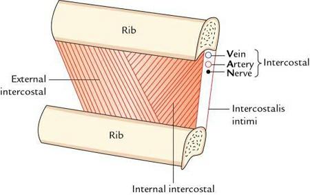 • Thereafter, it continues its course in the costal groove between internal intercostal and intercostalis intimi muscles.