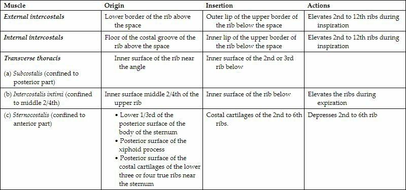 ❖ Give the origin, insertion, and actions of intercostal muscles in tabular form. AN21.4
