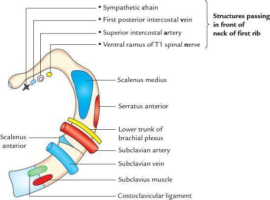 • Its base is attached to the inner border of the first rib and its cartilage.
