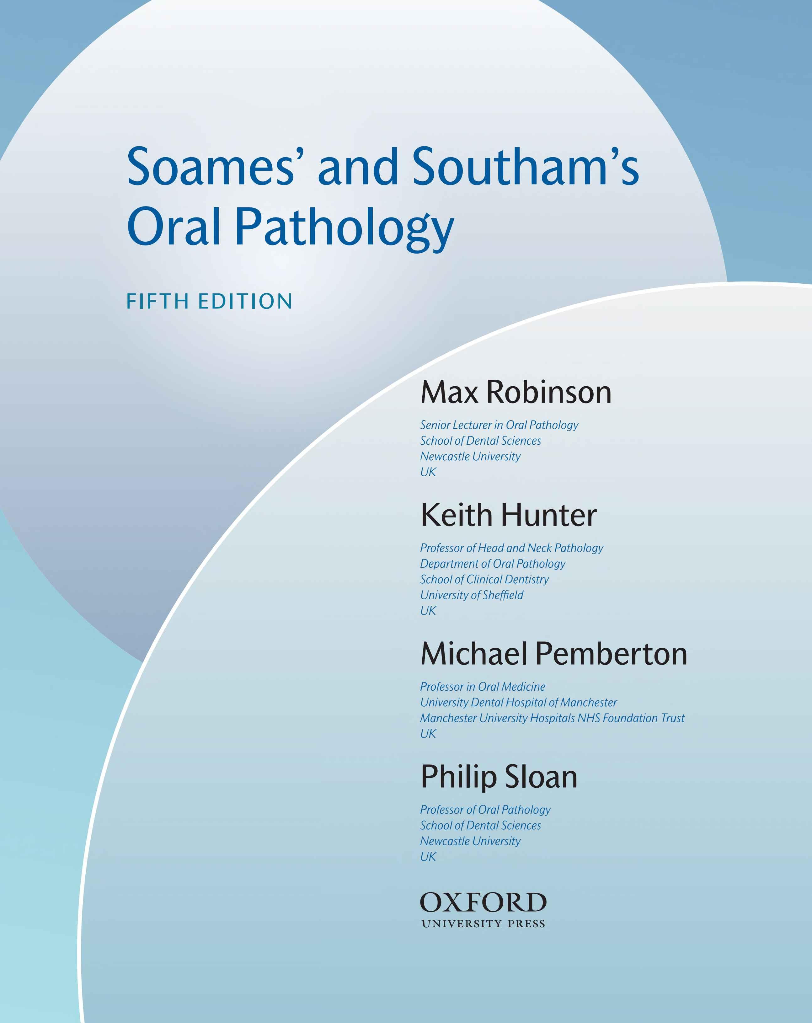 OxfordUniversity Press wishesto acknowledgethecontribution of Professor JV Soames and Professor JC SouthamtothepopulartextbookOral Pathology,thefourtheditionofwhichformsthebasisofthiswork This populartextbookhasenlightenedgenerationsofdentalstudentsaswehopethisnewbookdoestoo