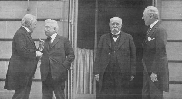 Plate 1. The Treaty of Versailles (1919) was formulated at the Paris Peace Conference after World War 1. Pictured here, at the conference, are (from left) David Lloyd George, Vittorio Orlando, Georges Clemenceau and Woodrow Wilson.