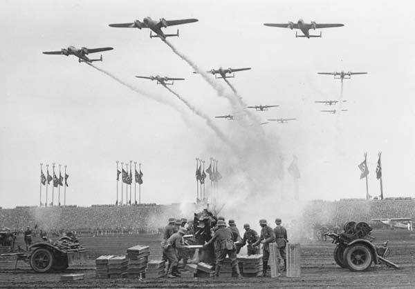 Plate 8. A Luftwaffe display at the Nuremberg Rally in 1938. The Nazis used these displays to intimidate their opponents, and project an exaggerated image of their military strength.