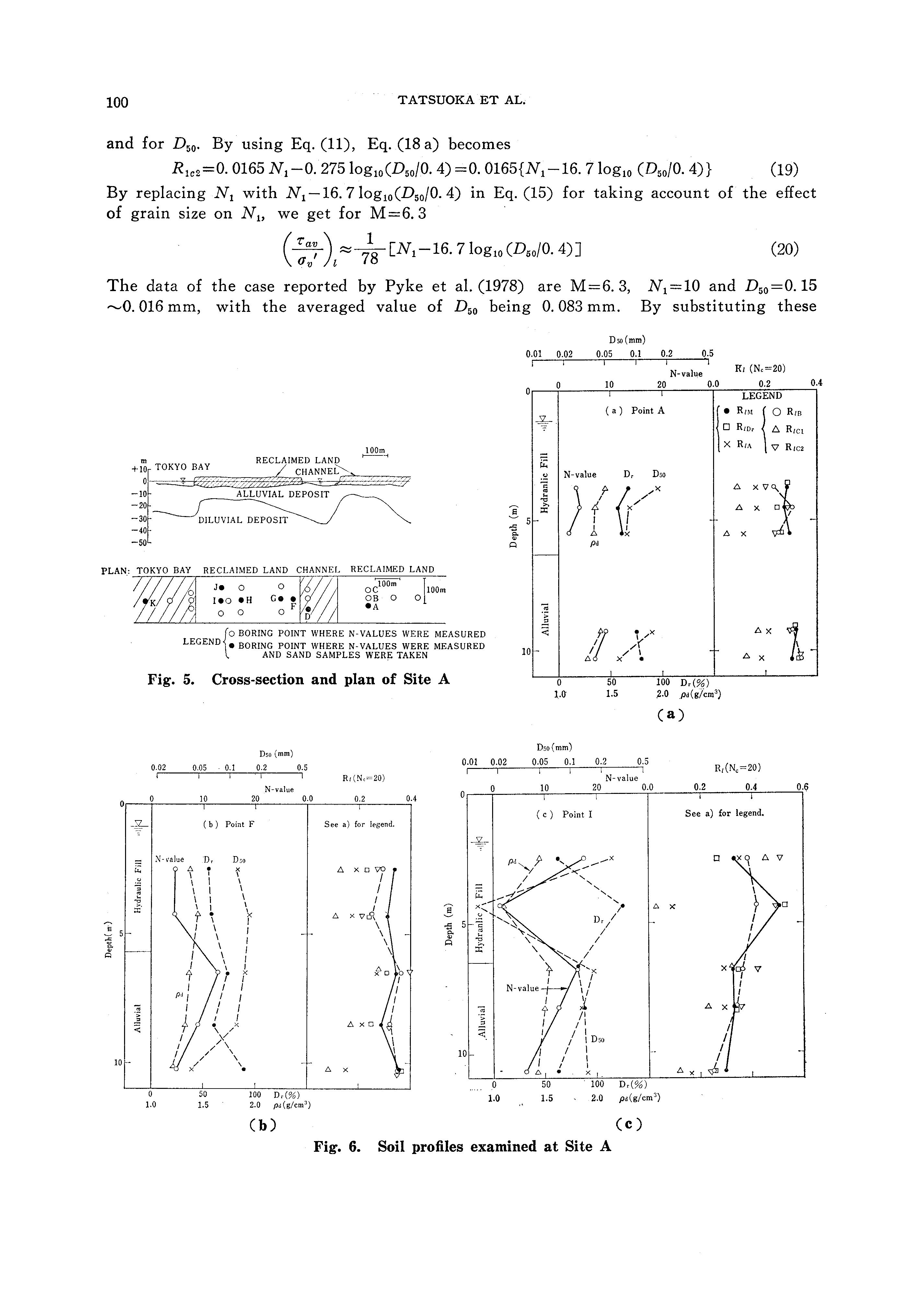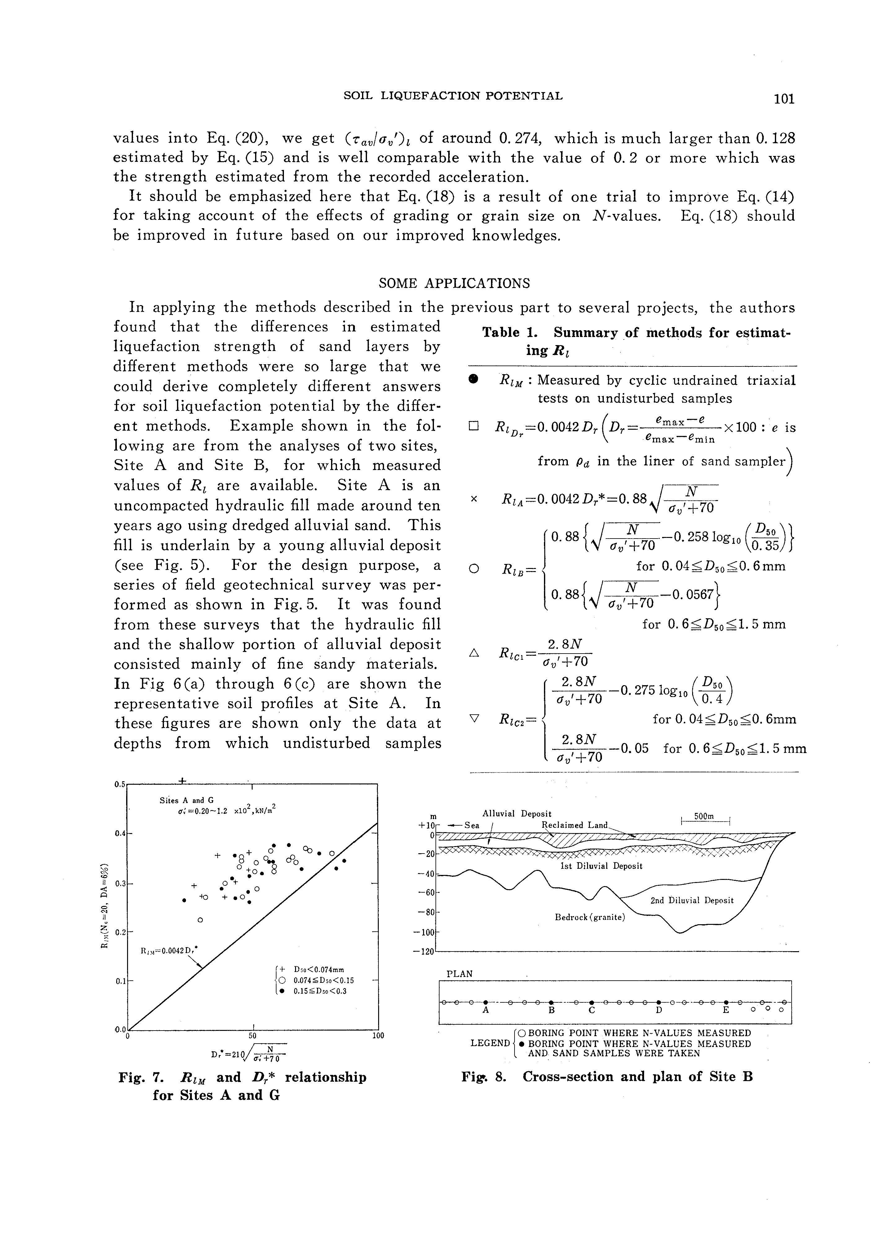 In the original simplified procedure by Seed and Idriss (1971), the effects of D 50 was taken into account as the variation of Ri with the variation of D 50 for an identical value of Dr as shown in Fig. 2. It can be seen from Fig. 2 that for an identical value of Dr or Dr*, Ri becomes smaller for a smaller value of D 50 • Therefore, if the original simplified procedure by Seed and Idriss (1971) is applied to Site A, the discrepancy of Ri by the original simplified procedure from measured values becomes larger than it is m Fig. 6.