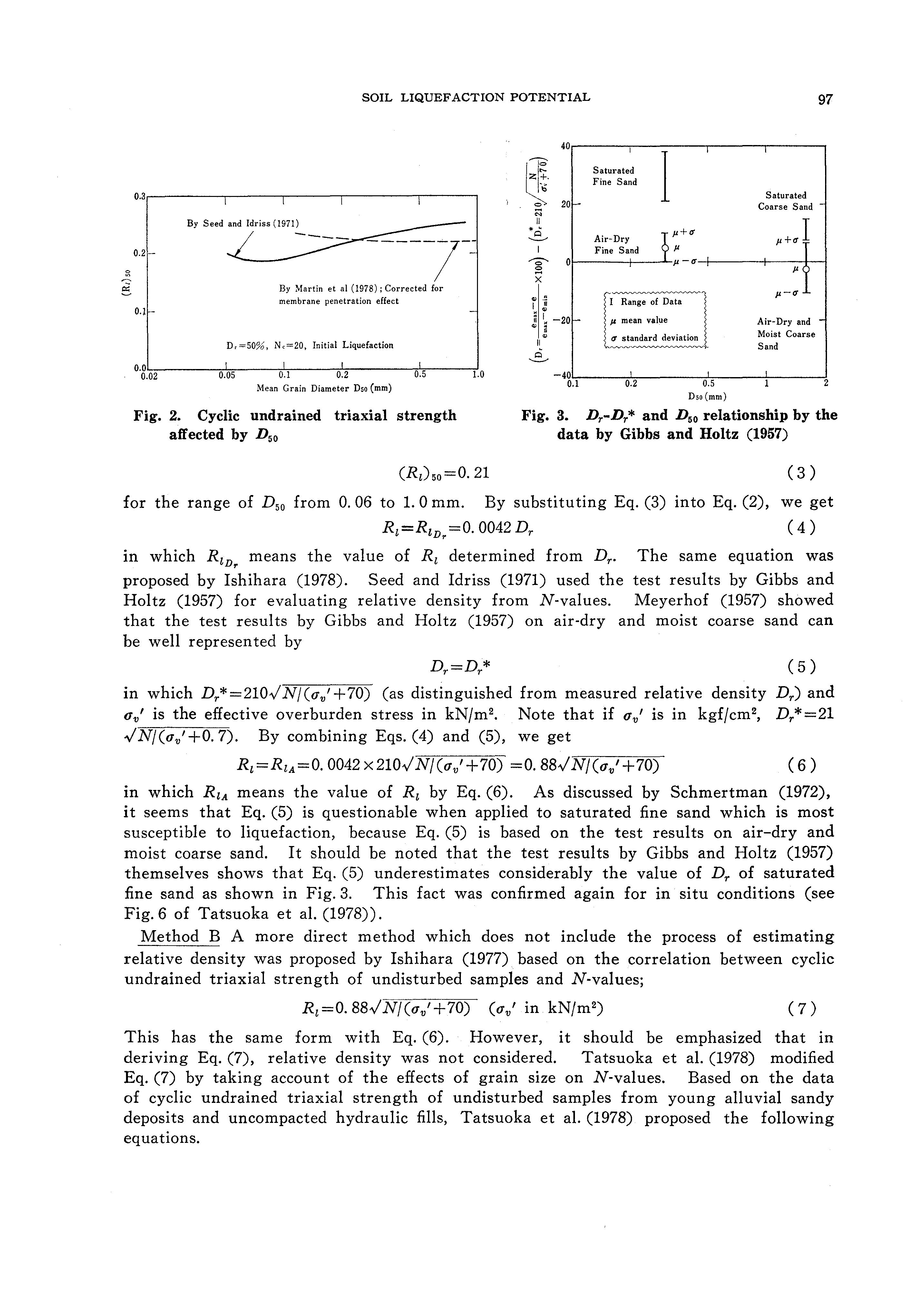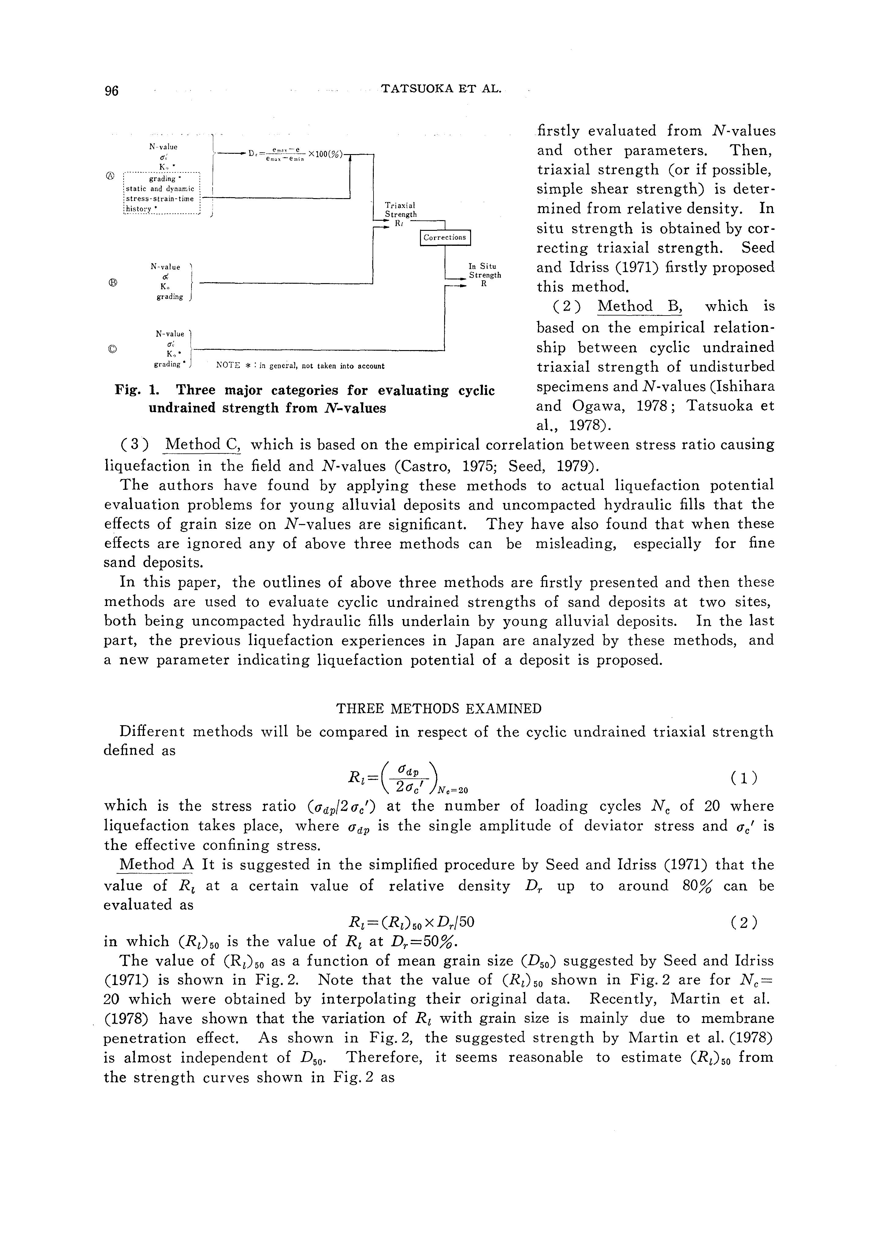 ( 2) Method B, which is based on the empirical relationship between cyclic undrained triaxial strength of undisturbed specimens and N-values (Ishihara and Ogawa, 1978; Tatsuoka et al., 1978).