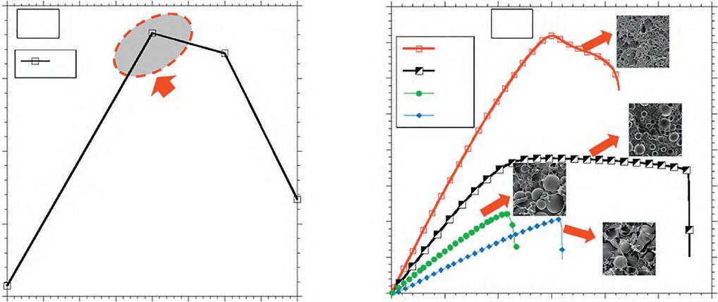 FIG.1.4 (A)SurfaceareaofPBSAdomainsperunitvolumeofblendand(B)typicalstress-straincurvesshowingfailure typeforselectedblends.Theinsetscanningelectronmicroscopyimagesshowthesurfacemorphologyofvarious blends. ReproducedwithpermissionfromOjijoV,RaySS,SadikuR.Roleofthespecificinterfacialareaincontrolling propertiesofimmiscibleblendsofbiodegradablepolylactideandpoly[(butylenesuccinate)-co-adipate].ACSAppl MaterInterfaces2012;4:6690–701.Copyright2012,AmericanChemicalSociety.
