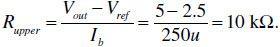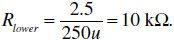2 Ibequals250μAandentirelycirculatesinRlower Thankstothecontrolloop,25Vis“seen”acrossRlower Therefore,