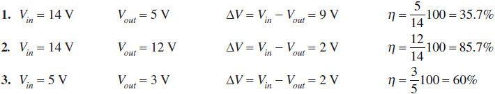 Toclosethestudyonregulatorefficiency,wecantakethreedifferentoutputexampleswithlinearregulators,whereoutputandinputconditions vary: