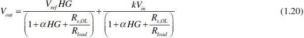 Fromthisequation,wecanseethatincreasingthedcgain,G(0),helpsdiminishthestaticerrorwhichfinallyaffectsouroutputvoltageprecision Anotherimportantparameterinfluencedbytheloopgainistheclosed-loopoutputimpedanceTheoutputimpedanceofasystemcanbederived indifferentmannersAsFig15hasshown,ourclosed-loopgeneratorcannowbereducedtoitsThéveninequivalent,thatis,avoltagesource Vth[Voutmeasuredwithoutanyload,orRload=∞inEq(112)],followedbyanoutputimpedanceRs,CL,whichweactuallylookforOneoption consistsofcalculatingaresistorRLXwhich,oncewiredbetweentheoutputandground,willreduceVout=Vthto Whenthisoccurs, RLXsimplyequalsRs,CL(wehavebuiltasimpleresistivedividerwithequalresistors)WecanquicklymanipulateEq(112),assuming