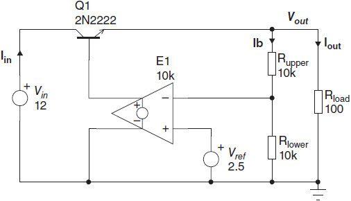 FIGURE12Theadditionofanerroramplifierbringsregulationtothecircuit:Wehavebuiltalinearregulator