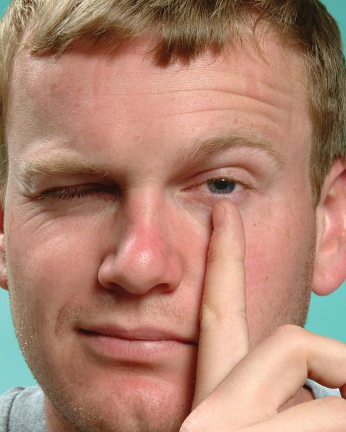 Dispenser Cannot Close One Eye. Occasionally the person doing the measuring is unable to close one eye independent of the other. This can be remedied by occluding (covering) the eye with the free hand. The practice of holding the lid down with one fi nger gives an unprofessional appearance, especially when wearing glasses. Occluding the eye with the hand held flat appears to be a natural part of the test and does not reveal a person’s inability to close only one eye.