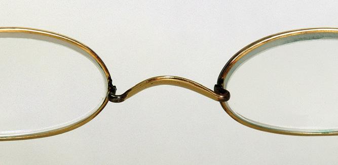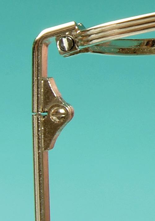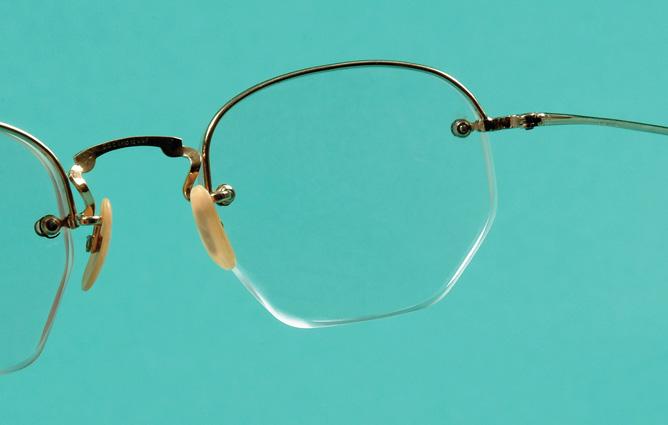 Figure 1-15. Metal saddle bridges were originally designed to rest directly on the crest of the nose. They may still be used as originally designed shown in the frame pictured. Often a metal saddle bridge is just for decorative purposes and is used in conjunction with nosepads.