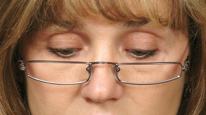Figure 1-7. Half-eye frames in use. Half-eyes are made especially for those who need a reading correction but no correction for distance vision.