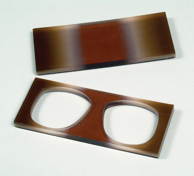 Cellulose acetate can be formed into sheets of plastic from which frame parts can be cut, or it can be made into acetate granules that are used for injection molding. For spectacle frames, cellulose acetate is generally made into sheets and milled (Figure 1-21).