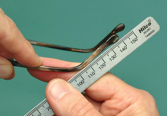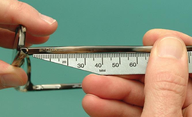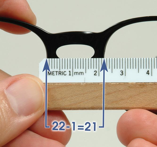 When the dispenser is confident that pupil centers are accurately marked, the frames are removed and the distances from the center of the bridge to the center of each cross are measured and recorded. (These steps are summarized in Box 3-2.)