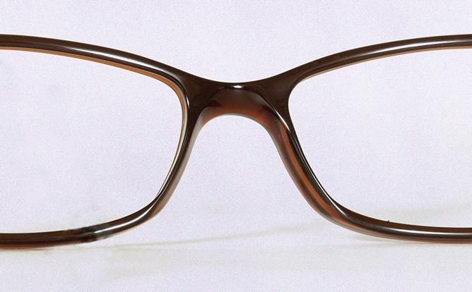 The bridge area of a plastic frame is preformed and sits directly on the bridge of the nose. It is important, then, in picking out a plastic frame that the frame fit the nose well, since adjustments to this part of the frame are extremely difficult. Bridge adjustments for certain plastics, such as nylon, carbon fiber and polyamide, are not possible.