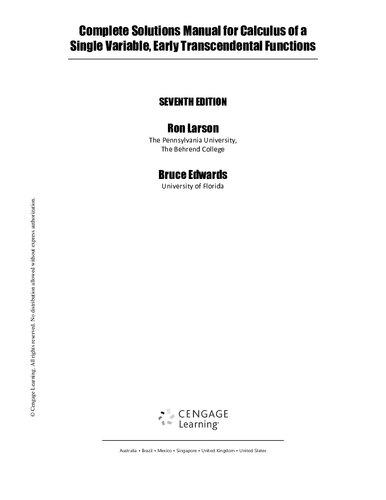 Complete Solutions Manual for Calculus of a Single Variable, Early Transcendental Functions 7th Edition Ron Larson