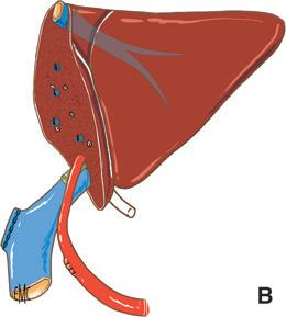 nel caso in cui il TEA sia impossibile (scoperta intraoperatoria di fibrosi epatica) e si converta in TEO. Nulla deve opporsi allo scorrimento del flusso portale e sovraepatico del trapianto. La chiave del successo risiede nella realizzazione di grandi anastomosi vascolari e nella perfetta regolazione della lunghezza dei vasi sovraepatici e della porta.