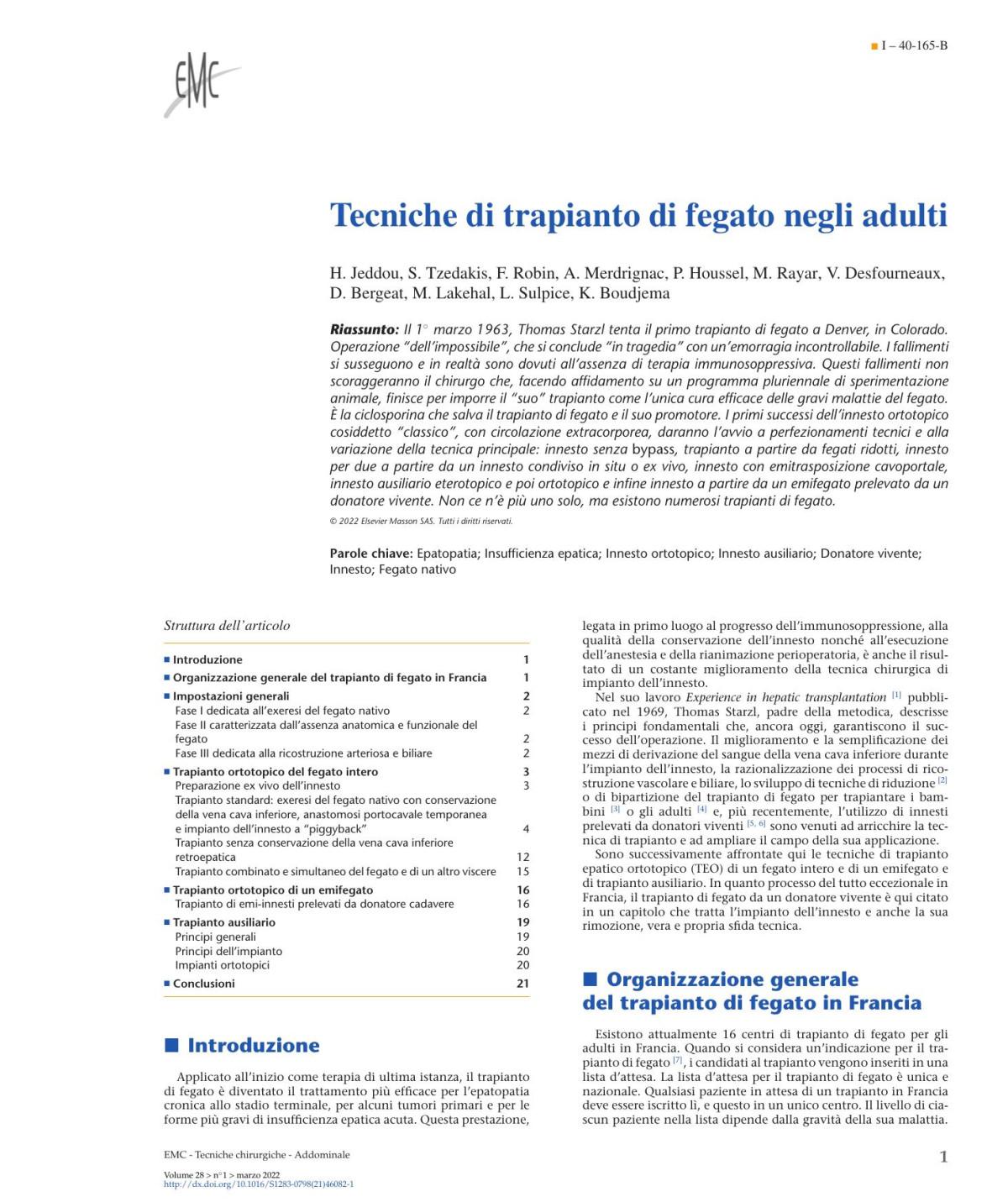 Ogni riferimento a questo articolo deve portare la menzione: Jeddou H, Tzedakis S, Robin F, Merdrignac A, Houssel P, Rayar M, et al. Tecniche di trapianto di fegato negli adulti. EMC - Tecniche chirurgiche - Addominale 2022;28(1):1-22 [Articolo I – 40-165-B].