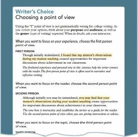 New “Writer’s choice” boxes on grammar and style topics offer opportunities for students to practice critical
