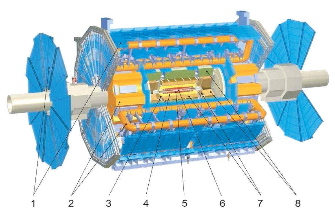 Fig.1.2 AlayoutoftheATLAS detector,showingthemajordetector components,from en.wikipedia.org/wiki/ATLAS experiment.Original imagefromCERN.ReprintedwithpermissionfromCERN.