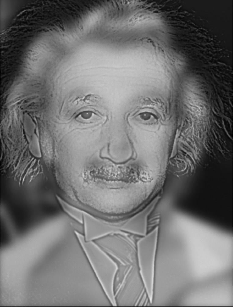 Figure 1.1 Superimposed low-frequency and high-frequency images. From close up you see Albert Einstein (high-frequency image), but from far away (or if you squint) you see Marilyn Monroe (low-frequency image). Any curve can be decomposed into component sine waves. Te spatial frequency of the curve depends on the spatial frequencies of those sine waves. See the Wikipedia article on spatial frequency at https://en.wikipedia.org/wiki/Spatial_frequency. Tanks to Aude Oliva for the fgure. (See Oliva, Torralba, & Schyns, 2006.)
