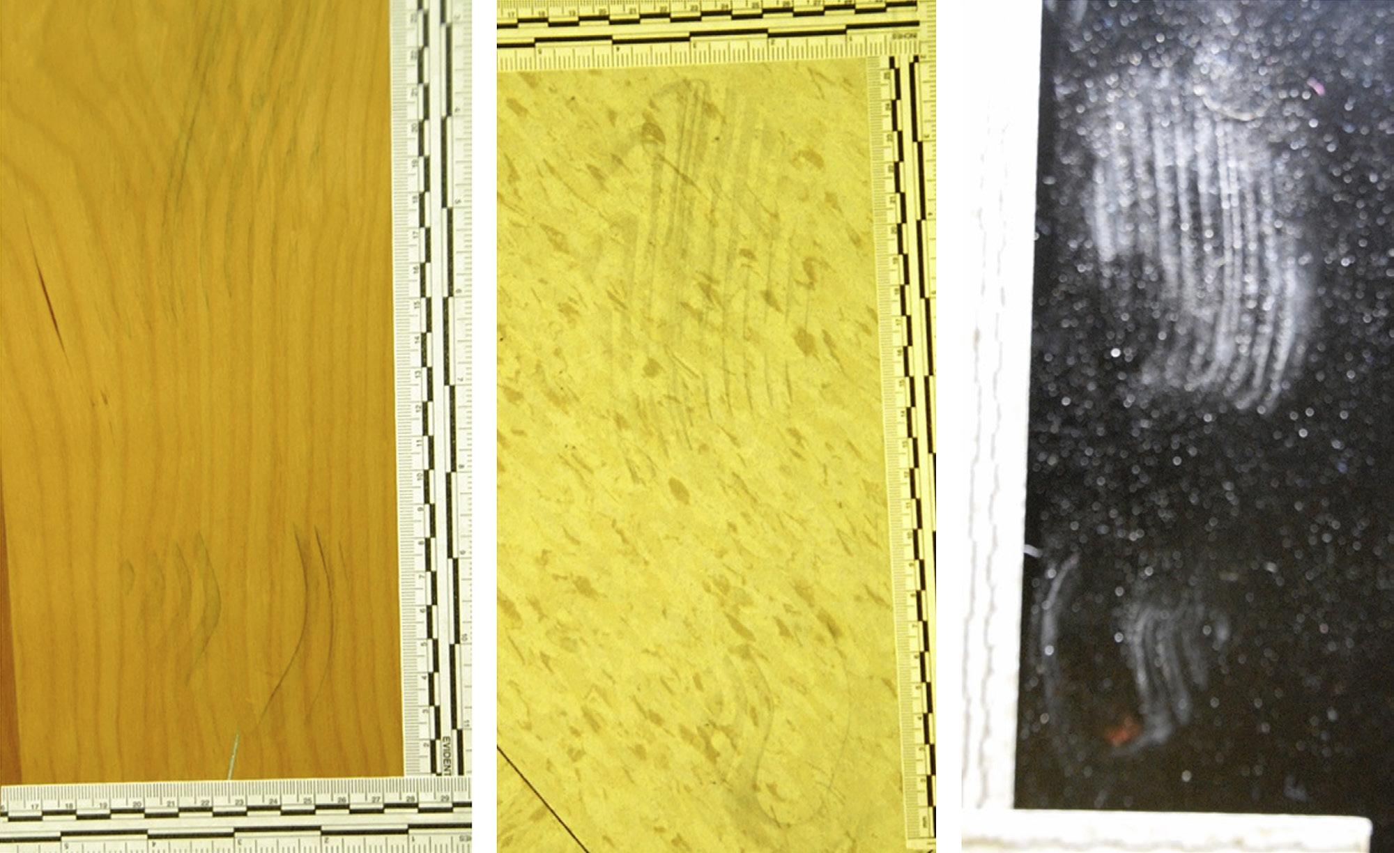 crime is/are in contact with physical surroundings in a forceful or otherwise detectable manner; there is often an attempt to alter, destroy, remove, clean up, or cover up evidence of a crime. That traces may be left in the form of blood, semen, saliva, physiological fluids and secretions, hair, fibers, fingerprints, palm prints, footprints, shoe prints, weapons and firearms including pistols, rifles, revolvers, shotguns, knives, hatchets, axes, cutting instruments and cutting tools, blunt force instruments, projectiles, ammunition, bullet casings and fragments, GSR, dirt, dust and soil, paint samples, glass and plastic fragments, marks of tools used to gain access to locked premises or containers and items containing traces of any of the above mentioned articles. Many of the above items are minute and/or microscopic, thus requiring additional specialized examination by forensic science laboratory techniques (by the State Forensic Science Laboratory).