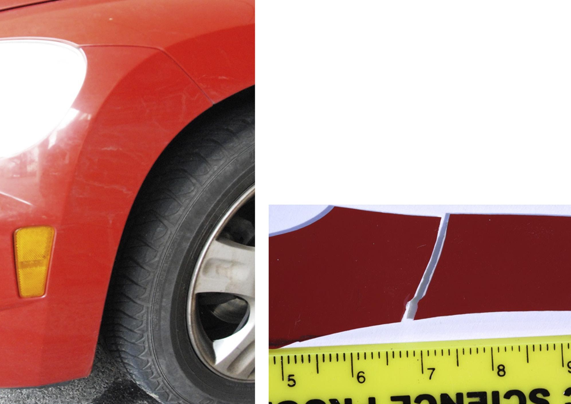 l Provide for investigative leads for detectives—the use of the physical evidence to give information to detectives that will assist them in locating victims and suspects. An example would be to determine the make, model, and year of the vehicle involved in a hit and run that left paint chips at the crime scene (see Figure 1.6).