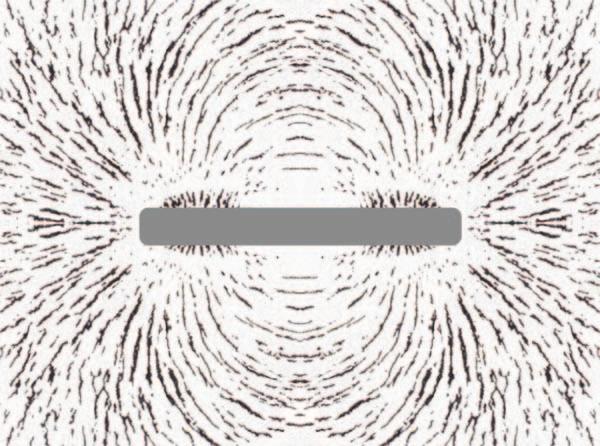 Fig.1.2 Thepatternofmagneticfieldlinesaroundastraightbarmagnet(the outlineddarkblock)isrevealedbyapowderofironfilingssprinkledonasheetof papercoveringthemagnet.