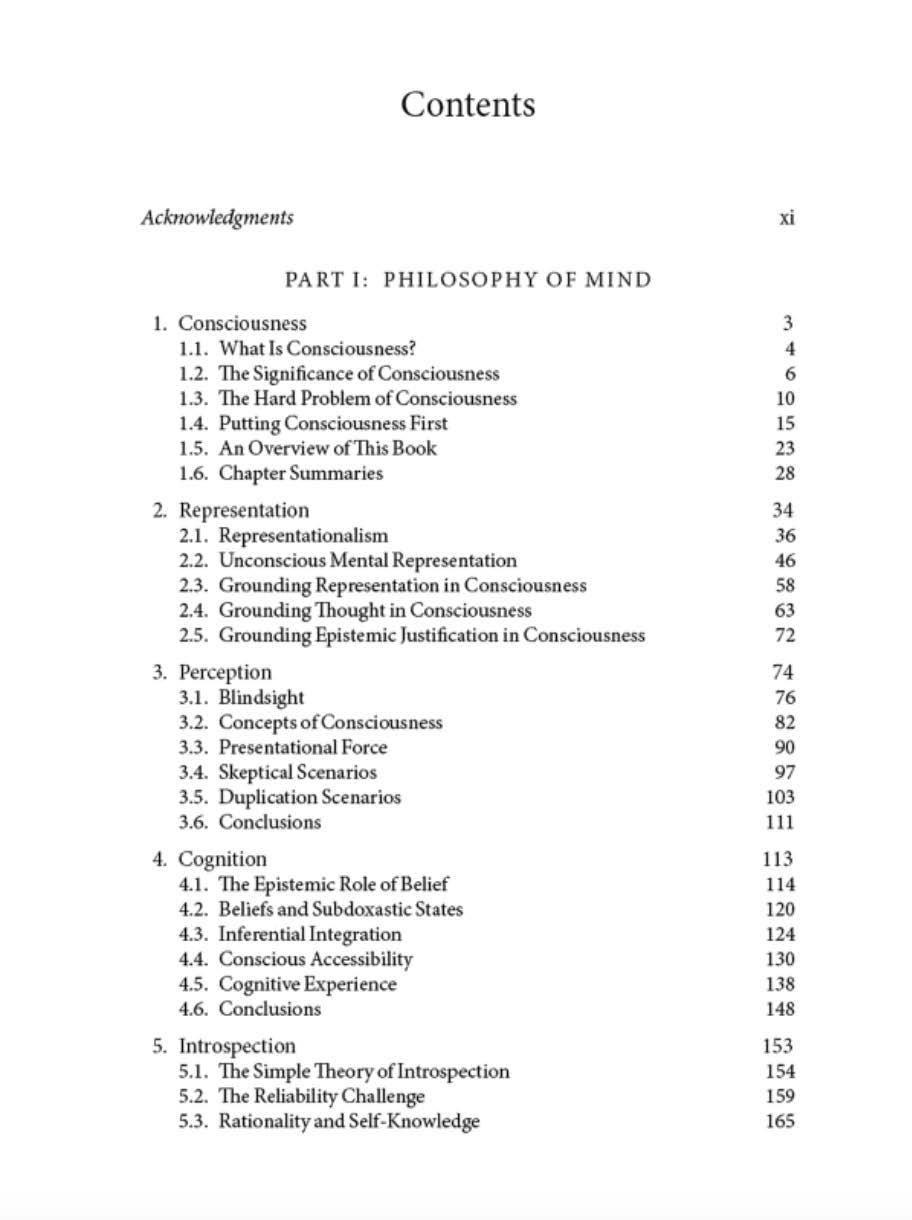 The book draws heavily on themes in my previous work, although the content has been substantially revised, expanded, and reorganized to yield a more unified and systematic account of the epistemic role of consciousness. Where I am relying on previously published work, I have indicated this in the footnotes. I am grateful to the editors concerned for the opportunity to reuse this work in substantially revised form.