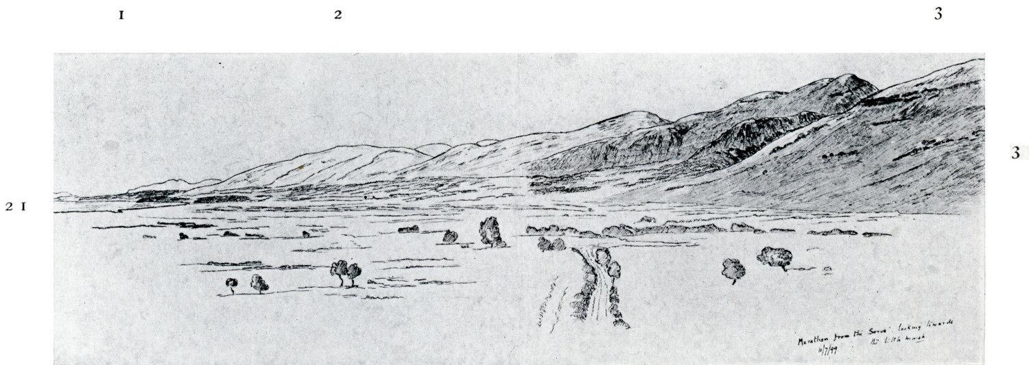 At either extremity of the plain is a marsh. That on the north-east is very extensive, reaching from the mountains all but to the sea. That on the south-west is small; but being at the extreme end of the plain where Mount Agrieliki comes within a half or three-quarters of a mile from the coast, it renders the passage from the south along the foot of this hill very narrow. This little marsh, though, of course, much drier in summer than in winter, was not, I should say, traversable in August, 1899; and this, too, after a prolonged period of drought. The interval between the two marshes is a little more than three miles.