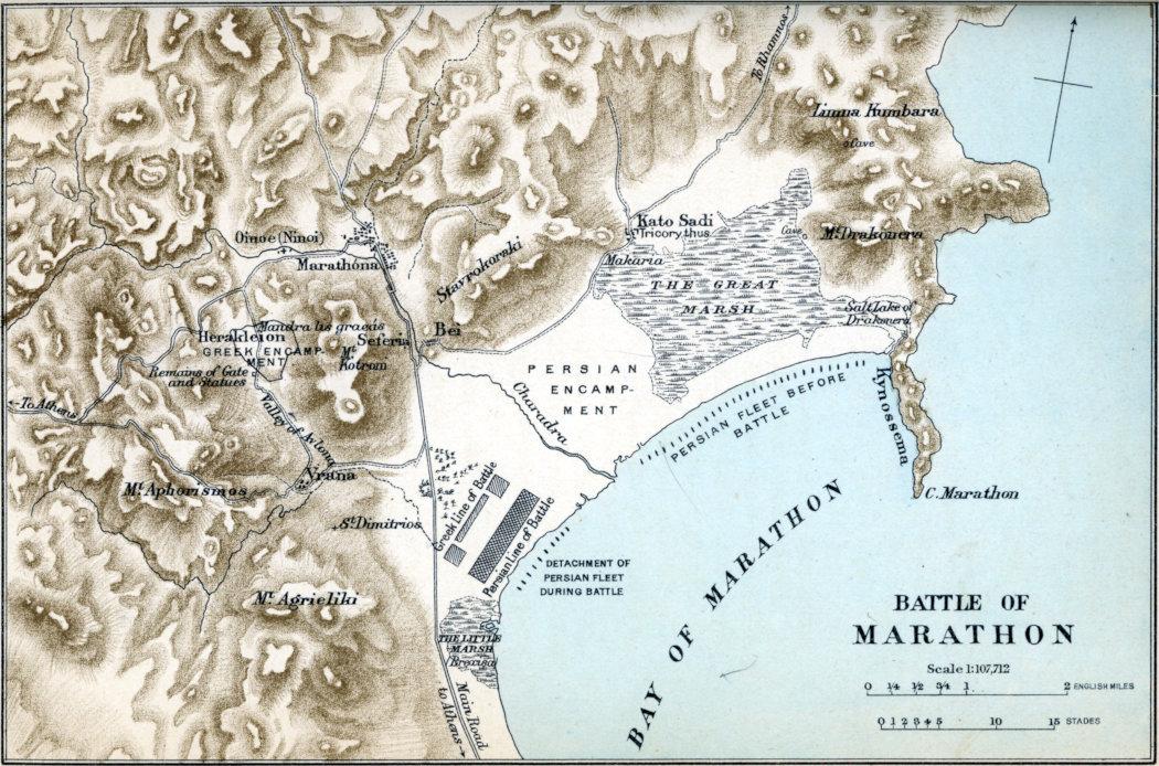 Why the Persians landed at Marathon has always been a matter of dispute. The reason given by Herodotus, namely its suitability for cavalry, is not convincing, because the plain of Athens itself, not to speak of the Thriasian plain, is more suitable for cavalry operations. Moreover, the Persians made no use of this arm during the battle.