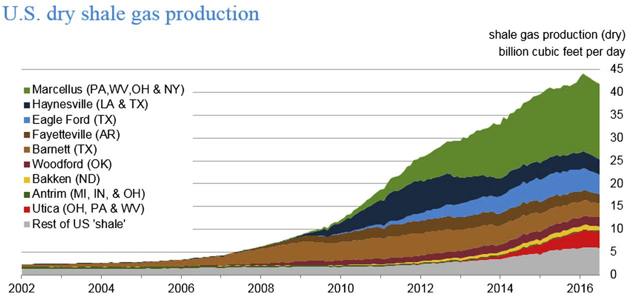 FIGUREI.1 ShalegasproductiontrendsintheUnitedStates. U.S.EnergyInformationAdministrationreportsand webpages.