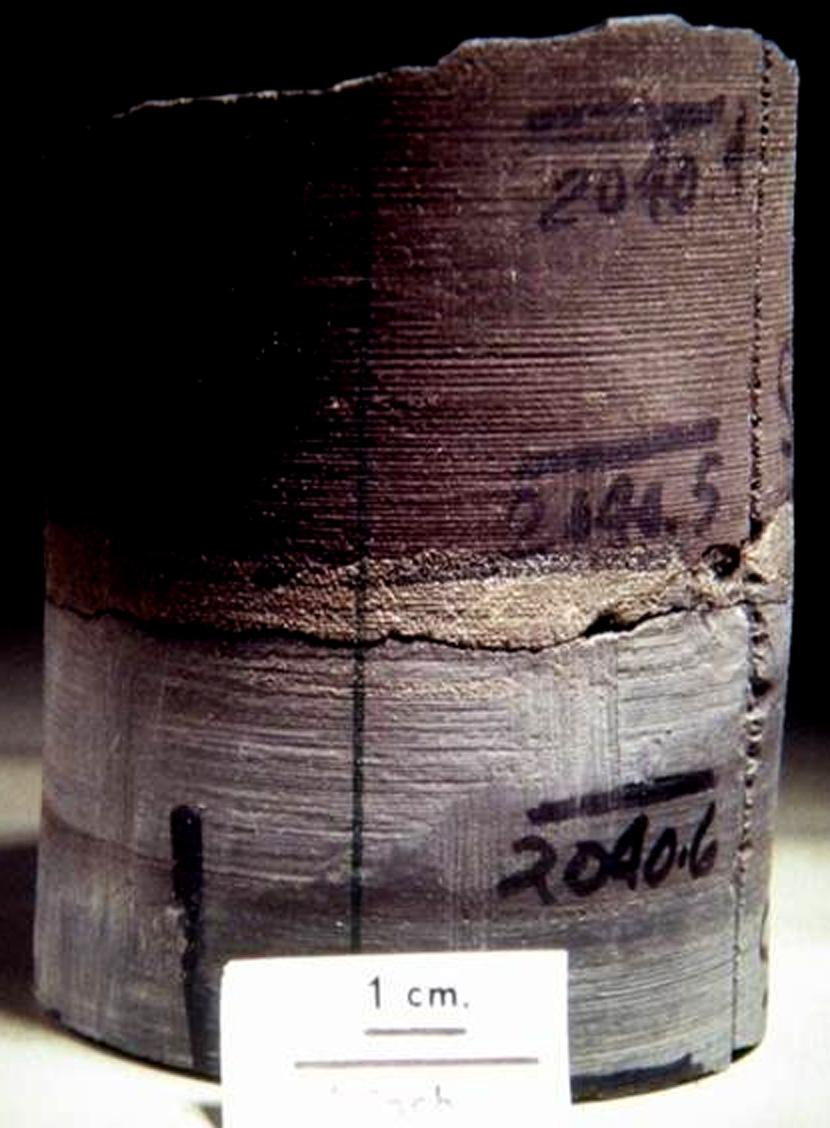 FIGURE1.1 PhotographofcontactbetweentheblackClevelandShaleandtheunderlyinggrayChagrin ShaleinadrillcorefromOhio16