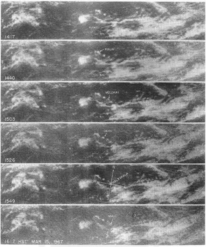 The first satellite with an onboard camera capable of continuous Earth viewing from a geostationary orbit was launched on December 6, 1966. On that day, the Applications Technology Satellite (ATS-1) was placed in an equatorial orbit at 38,000 km with an orbit period of 24 h; part of its payload was the Spin Scan Cloud Camera (SSCC, Suomi and Parent, 1968) that provided full-disk visible images of Earth and its cloud cover in 20 min. The SSCC was a last minute add on to the ATS-1 platform; Verner Suomi convinced Homer Newell at the National Aeronautics and Space Administration (NASA) to add this new capability after the satellite was already well into its fabrication. Inspired by instant replay when watching a Green Bay Packers football game, Suomi was determined to realize a similar replay for watching weather. Robert Parent provided the requisite engineering expertise to develop the camera that provided the first global animations of cloud systems in motion. Noting “the clouds move, not the satellite,” Suomi applauded his weather movies (see Fig. 2.1). Researchers immediately achieved new understanding of large-scale equatorial air mass flows (Fujita et al., 1969) and were soon routinely producing estimates of atmospheric motions by tracking cloud features in sequences of three images with half an hour separation (Hubert and Whitney, 1971). The meteorological community came to rely on the weather movies. By the spring of 1972, the first movie loops were being introduced at the National Severe Storms Forecast Center.
