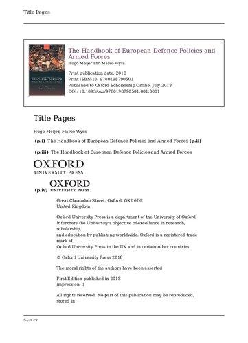 (p.iii) The Handbook of European Defence Policies and Armed Forces