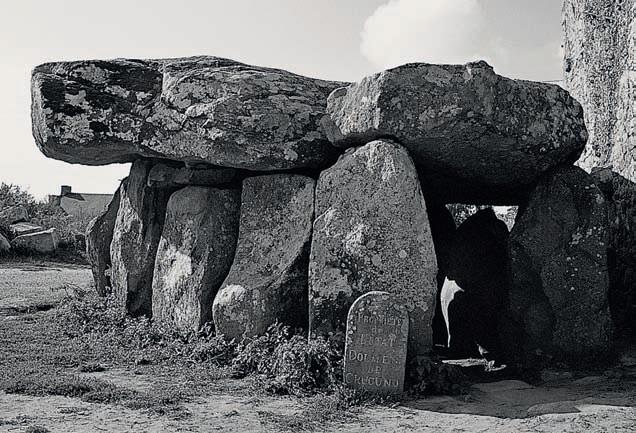 Figure 0.10 Burial site. Dolmen (upright stones supporting a horizontal slab), Crucuno, north of Carnac, France, Neolithic period.