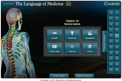 The student website accompanying this new edition is packed with activities, games, additional information, and video clips to expand your understanding and test your knowledge. Additionally, on the website, you can hear the terms corresponding to the Pronunciation of Terms section in each chapter (more than 3,000 terms in all). Access your resources at: http://evolve.elsevier.com/Chabner/language.