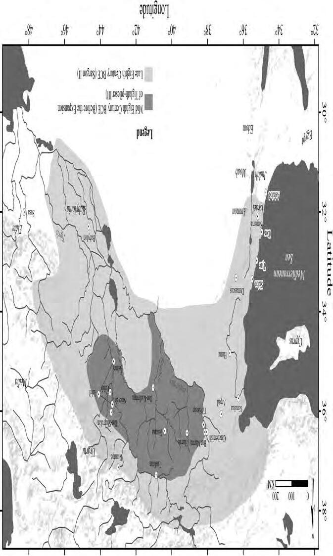 1.2MapoftheAssyrianEmpire,noting ‘theAssyriantriangle’,and highlightingtheextentoftheempireinthemiddleoftheeighth century ,andtheareasconqueredinthesecondhalfofthiscentury (mostlybyTiglath-pileserIII)9