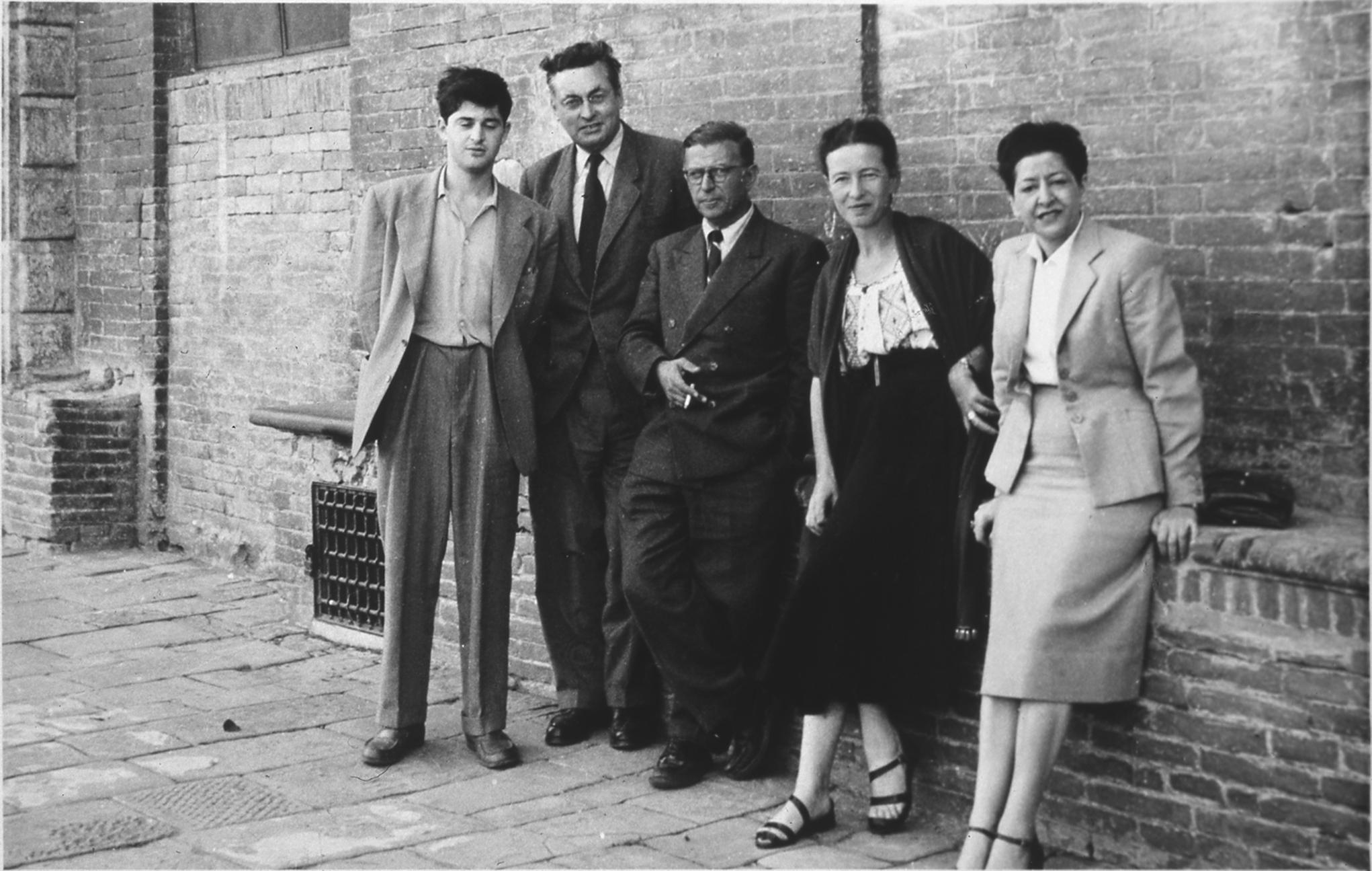 Fig.1. RaymondQueneau(secondfromleft)in1952withhisson,Jean-Marie, andhiswifeJanine(farright).InbetweenthemareJean-PaulSartreandSimone deBeauvoir.