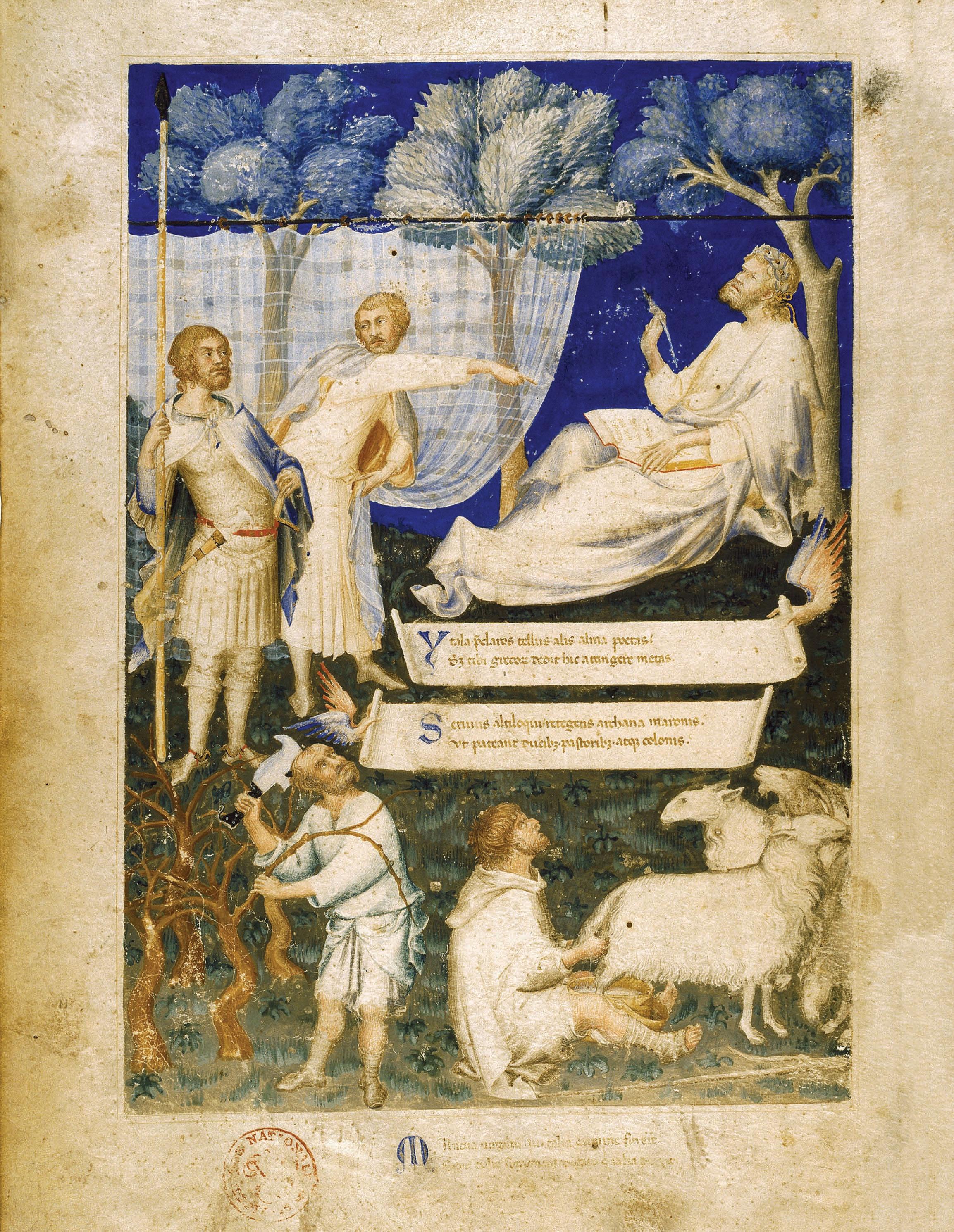The firstofthehumanistswasthePaduannotaryLovatoLovati(–),who readwidelyinclassicallyricpoetryandcomposedLatinverseepistles,atreatiseon classicalLatinpoeticmetre,andashortcommentaryonSeneca’stragedies.Lovati’s pupil,thePaduannotaryanddiplomatAlbertinoMussato(–)wroteinLatina defenceofpoetry,ahistorymodelledonLivy,andaversetragedy, Ecerinis,modelledon Seneca’stragedies,whichwarnedhisfellowcitizensagainsttyranny.ThesePaduan earlyhumanistsexhibitedanenthusiasmforclassicalliterature,awishtounderstandit better,andadesiretoimitateLatinliteratureintheirownprivateandliterarywritings. Intheirpublicletterstheycontinuedtofollowthemodelsofthemedieval arsdictaminis. Opposite: ,FrontispiecetoPetrarch’sVergil.Petrarchcommissionedthis frontispiecefromthegreatSienesepainterSimoneMartiniinAvignonaround forhis manuscriptofVergil’sworks.ThefrontispieceshowsVergilwriting,thecommentatorServius openingthecurtain,andthree figuresrepresentingVergil’sthreegreatpoems,the Aeneid,the Georgics,andthe Eclogues.