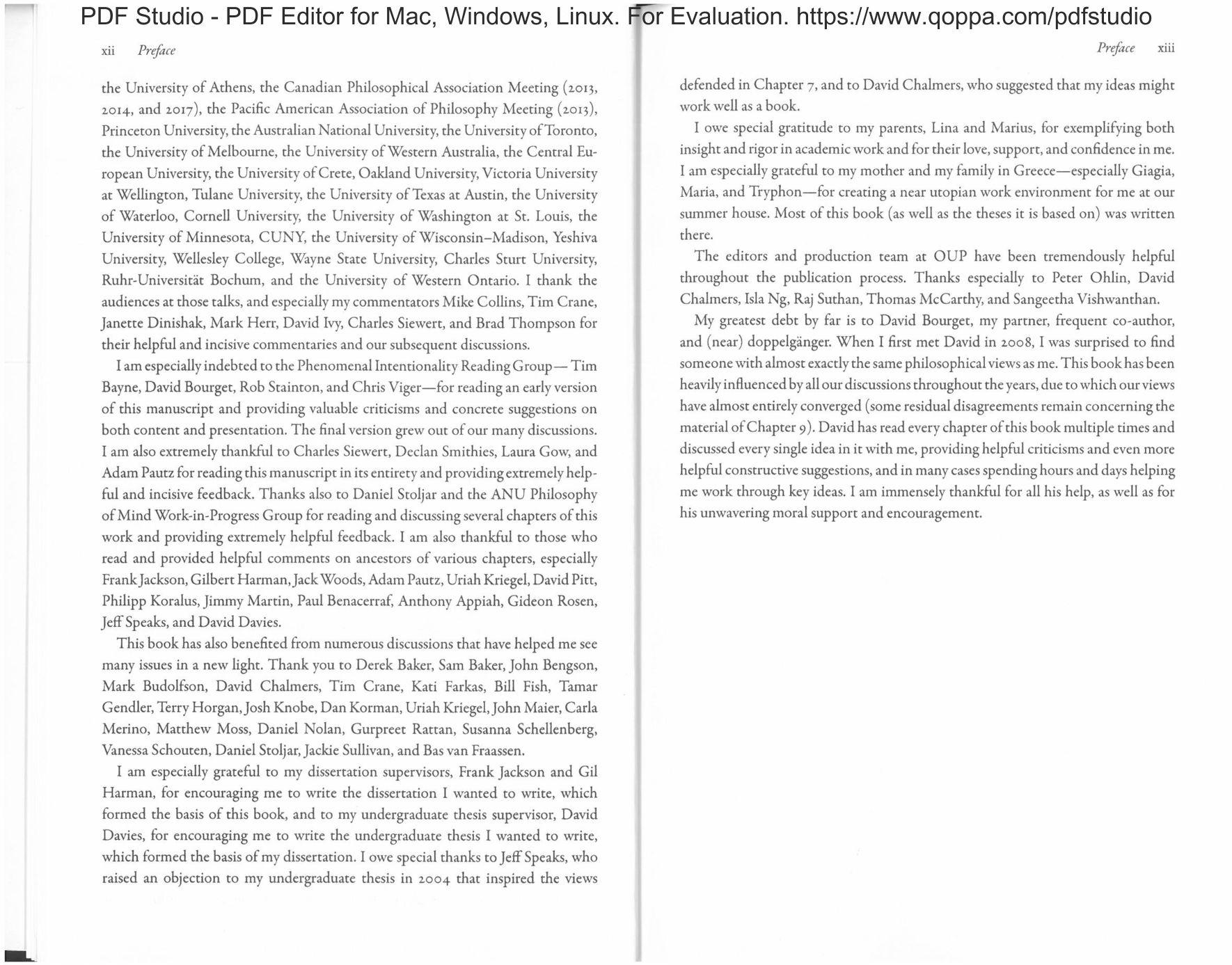 The ideas presented here have benefited from practically every philosophical interaction I have ever had with friends. colleagues, students. and mentors at McGill University, Princeton University, the Australian National University, the University ofW/estern Ontario, and elsewhere. I was especially lucky to benefit from the cxccptionally rich intellectual environment at the n alinn National University, where I spent time as a postdoctoral Fellow at the Centre for Consciousness and as a visitor.