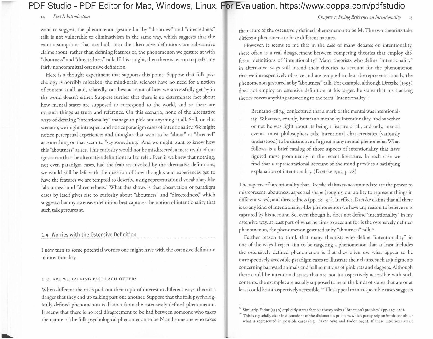about the superficial characters of our intentional states and contents prior to having a theory ofintentionality and, indeed, prior to doing much philosophy at all, The next two subsections outline two ways in which we can do this.