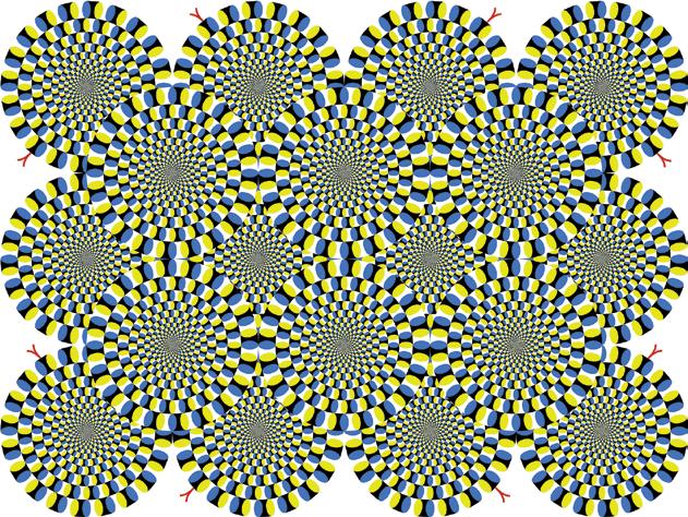 Colour Plate B. Example of the Ashihda and Kitaoka’s ‘Rotating Snake Illusion’. Letting one’s eyes wander over the image creates for most viewers an illusion of rotational motion in the circles. Reproduced with kind permission of Akiyoshi Kitaoka