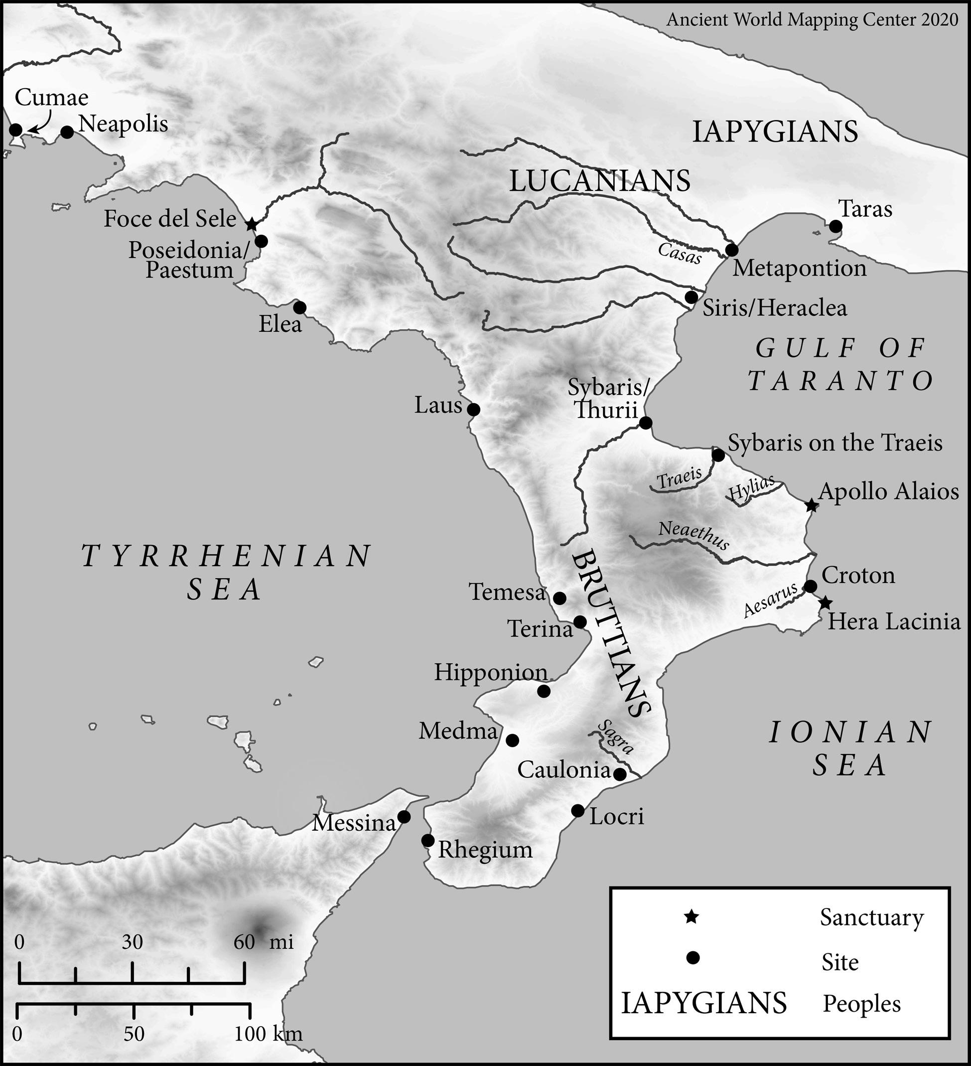 Fig. 0.1 Map of southern Italy. By the Ancient World Mapping Center.